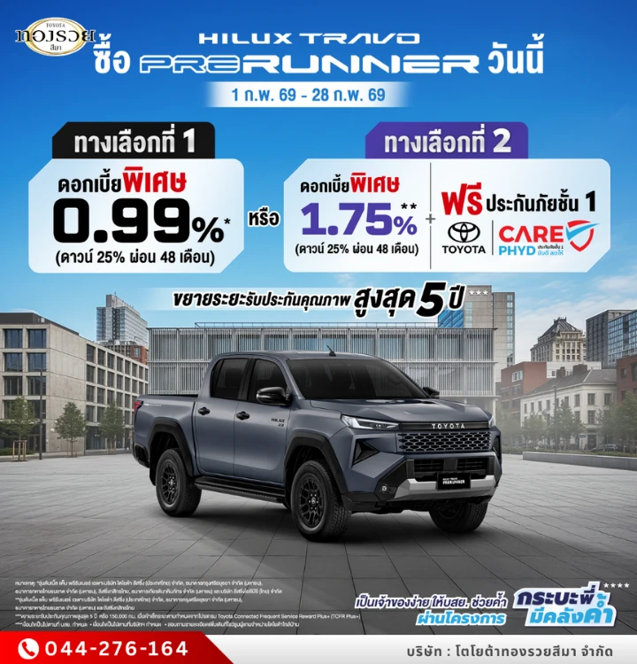 | Hilux Travo Smart Cab 4TREX 2.8 Premium AT | ไม่มี | ฿1,029,000 |